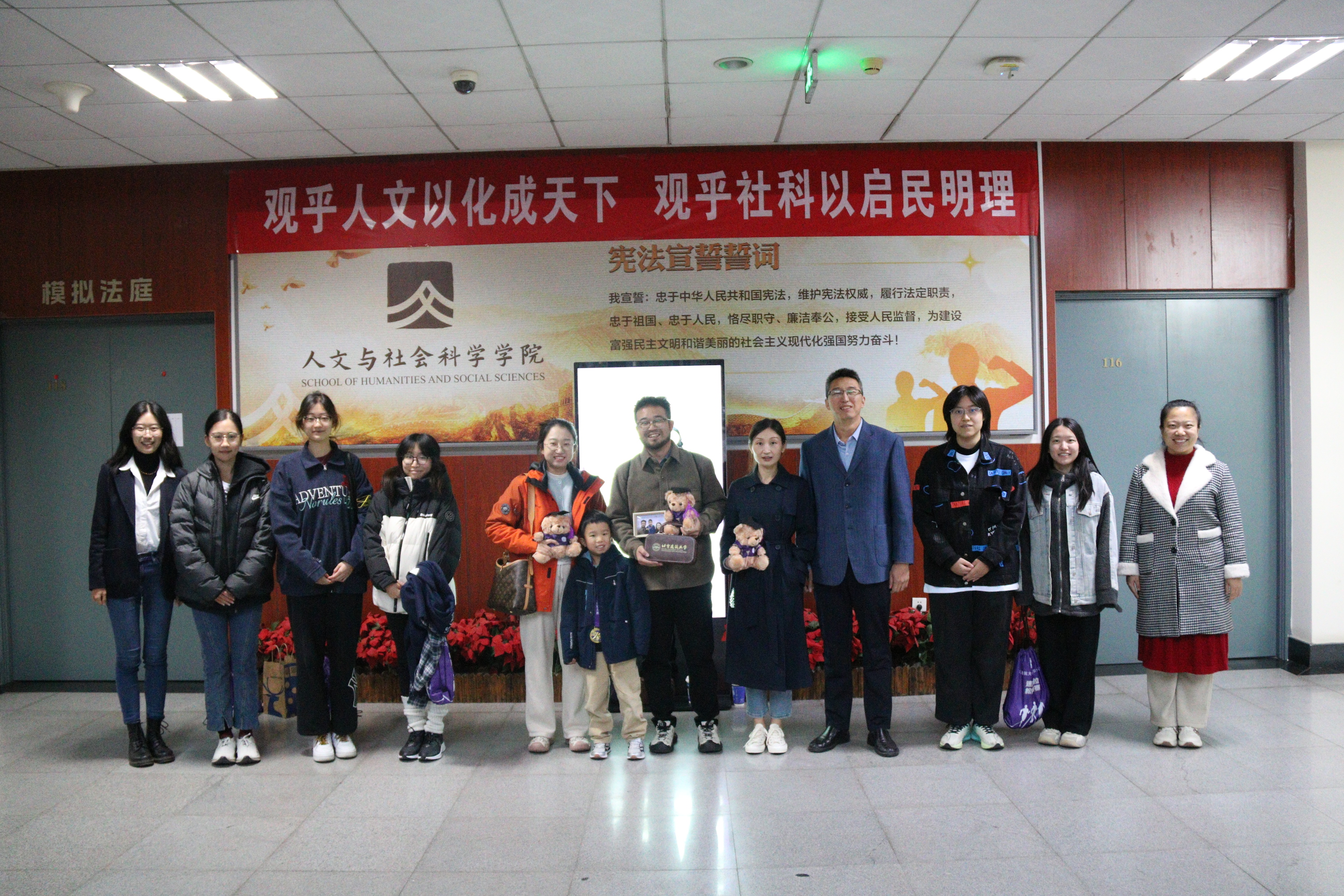 座谈结束后,参会师生陪同校友参观一楼校友照片墙,并进行合影留念,旧照新颜相映,为本次在校师生与校友交流画上圆满句号,延续校友情怀与治学精神。