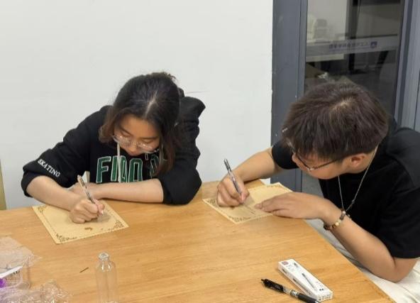 同学们领取信纸和信封,写下对未来自己的寄语,包括学业计划、目标或承诺等。写好的信封由活动组织者统一保管,并在约定时间返还,帮助同学们回顾过去,激励自己实现目标。