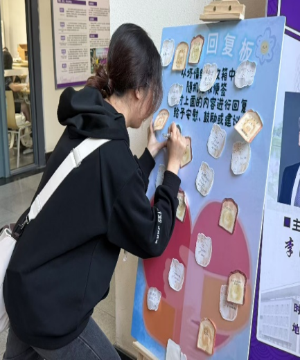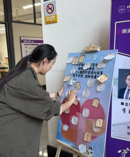 活动设置了“开心事展示板” 、“坏情绪回收箱”和“情绪回复板”。现场氛围热烈,同学们积极参与互动。大家领取便签,在“坏情绪回收箱”倾诉烦恼,也在展示板上分享开心事。组织者随机抽取便签回复,给予鼓励和建议。这些回复温暖了倾诉者,也为他人提供启示。同学们在释放负面情绪的同时,收获了支持与力量。