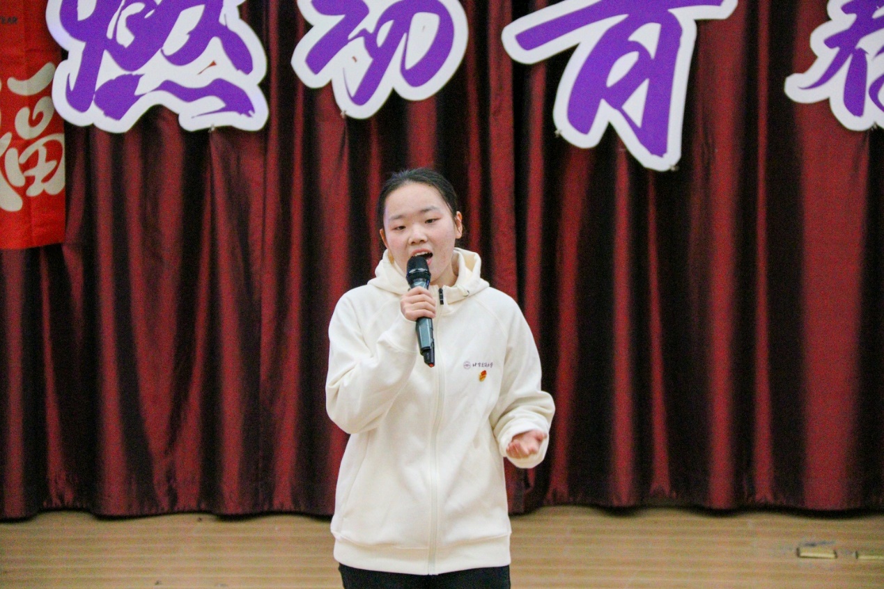 王玥然的舞蹈《山鬼》充满了神秘色彩,她用灵动的舞姿演绎了山鬼的故事,仿佛将神话中的人物带到了现实。胡钰潇、王思睿合唱《篇章》大气磅礴,唱出了青春的华章,激励着同学们在人生的篇章中书写辉煌。冯奕琦的一首《一笑倾城》轻松欢快,那甜美的歌声如同春风拂面,令人心情愉悦。