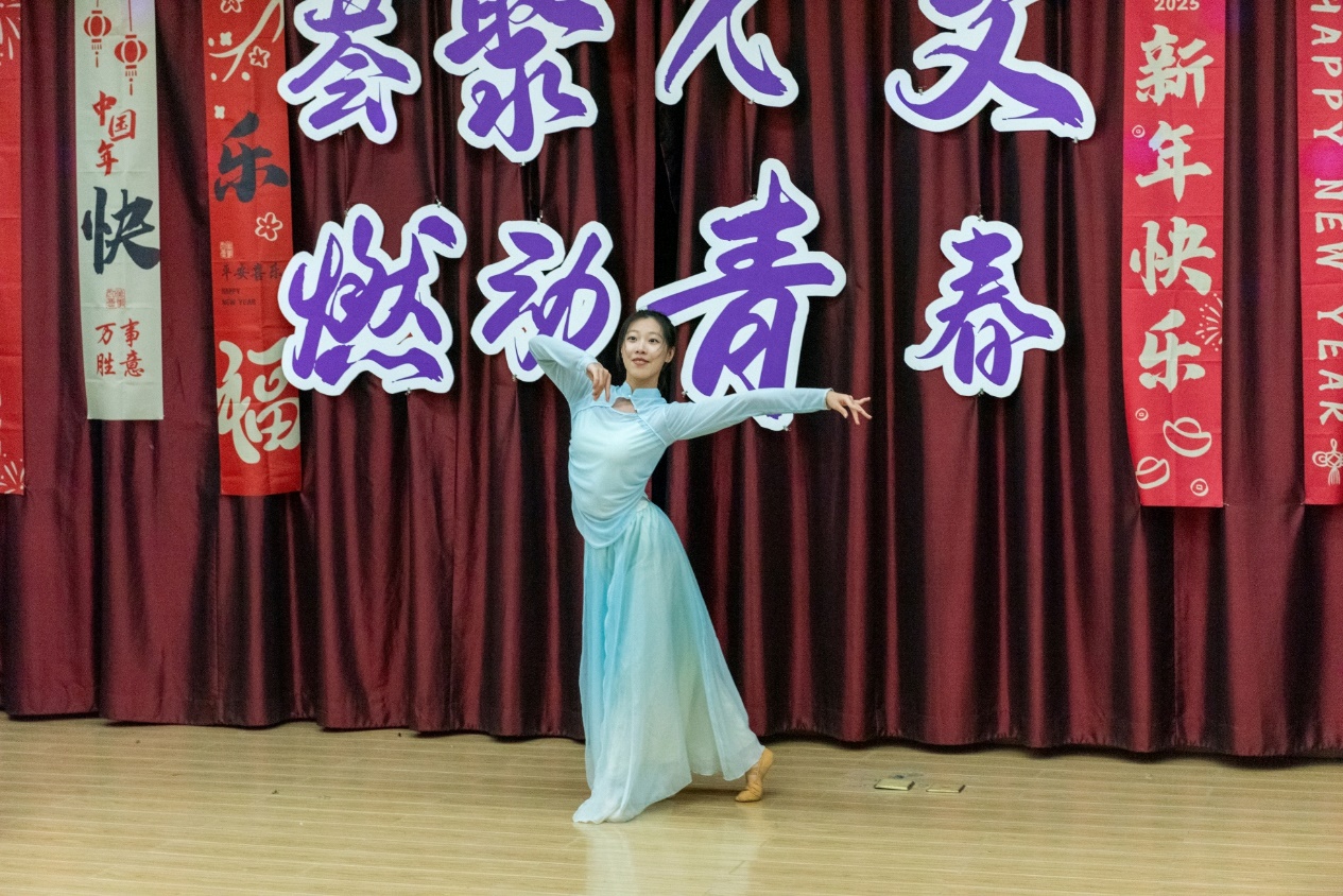 王新萌以其热情奔放的舞姿为我们带来拉丁舞《Katchi》,正式拉开了节目表演的序幕,每一个舞步都充满了活力,瞬间点燃了现场的气氛。唐瑞凝的一首《天空之外》传递出对未来的憧憬和对梦想的执着,仿佛将老师和同学们带入了一个充满奇幻与美好的世界。