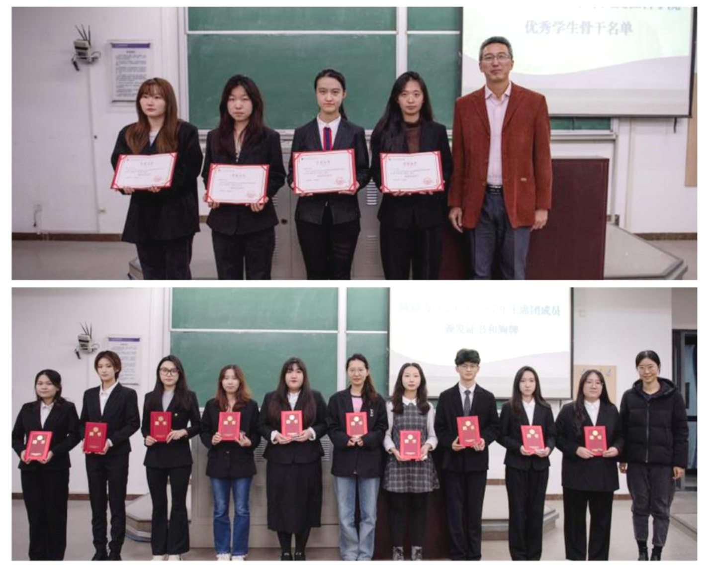 为上一学年优秀学生骨干代表颁发表彰证书(上图)
