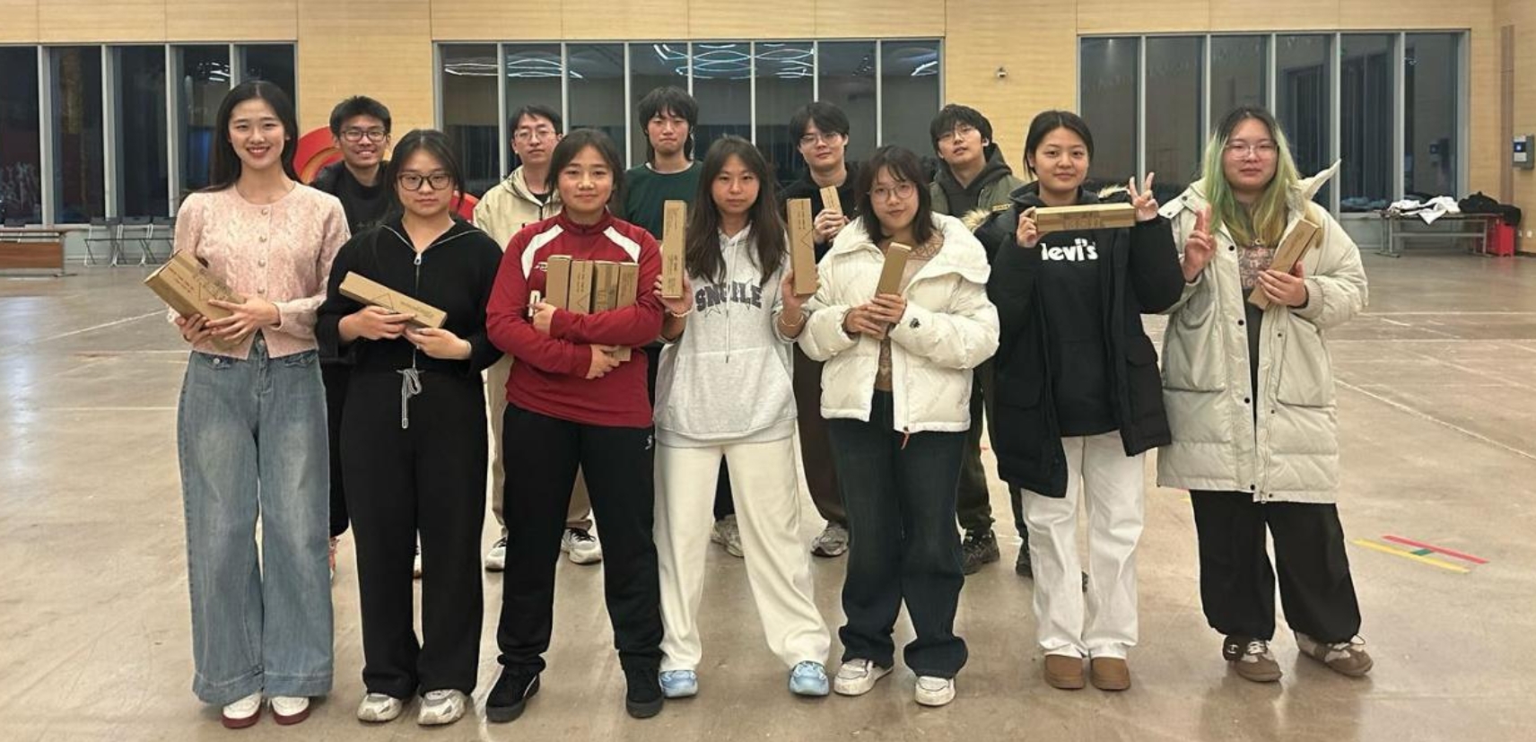 紧接着是“不倒森林”比赛,每班10名同学参与其中。大家全神贯注,在保证自己手中棒不倒的同时,迅速移动步伐将右手掌心按到相邻同伴的棒上。每一次成功的换位都伴随着同学们的阵阵喝彩,而一旦有棒倒下,队伍便会迅速调整,重新开始。