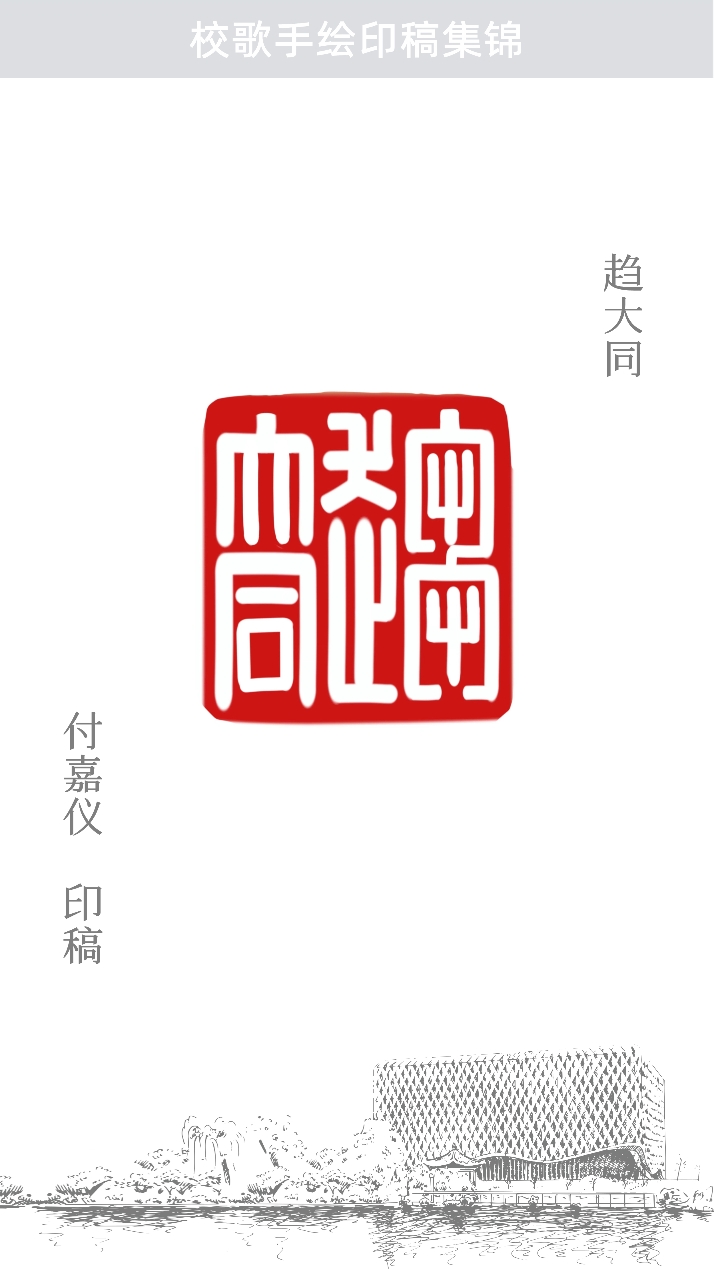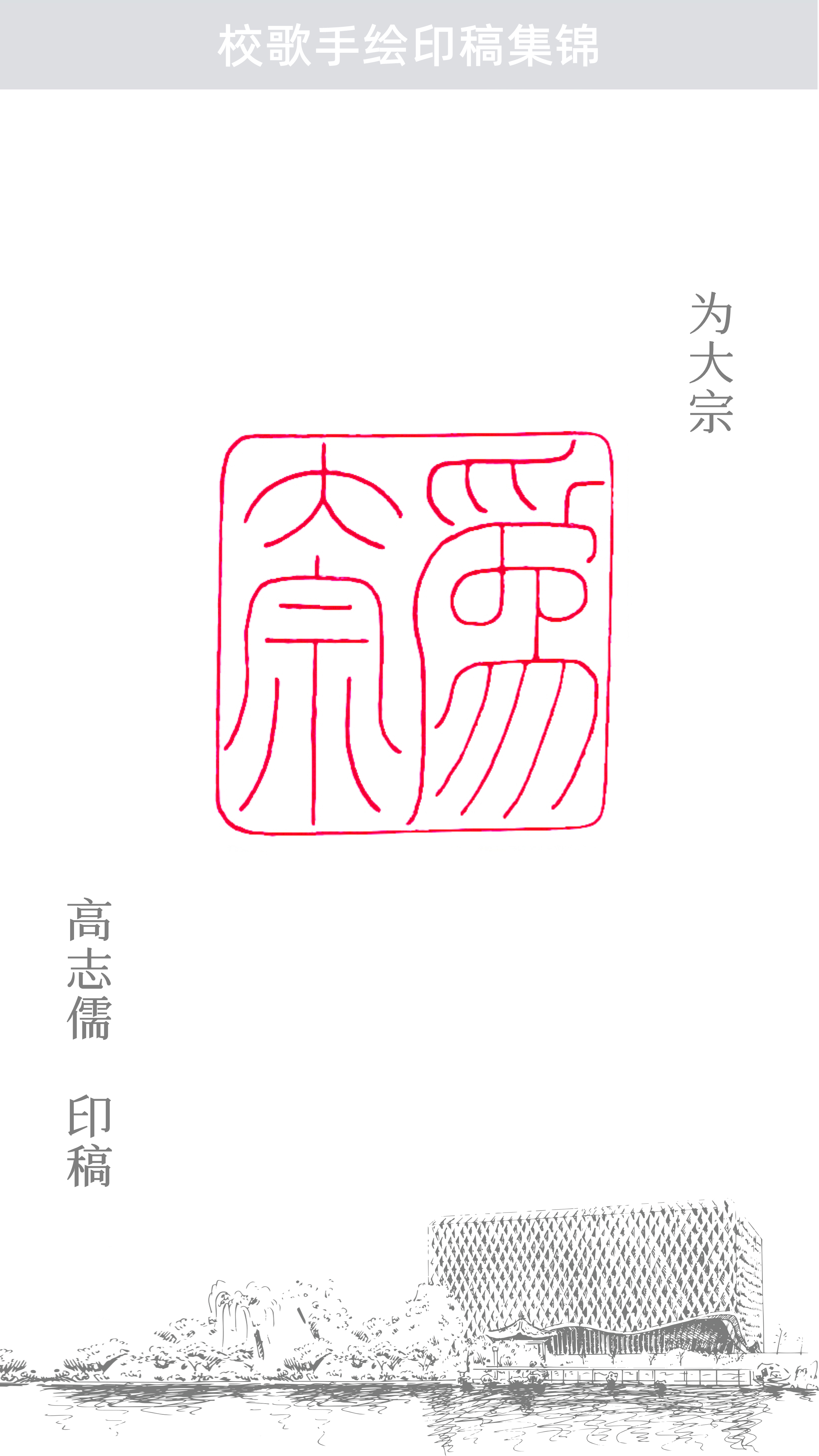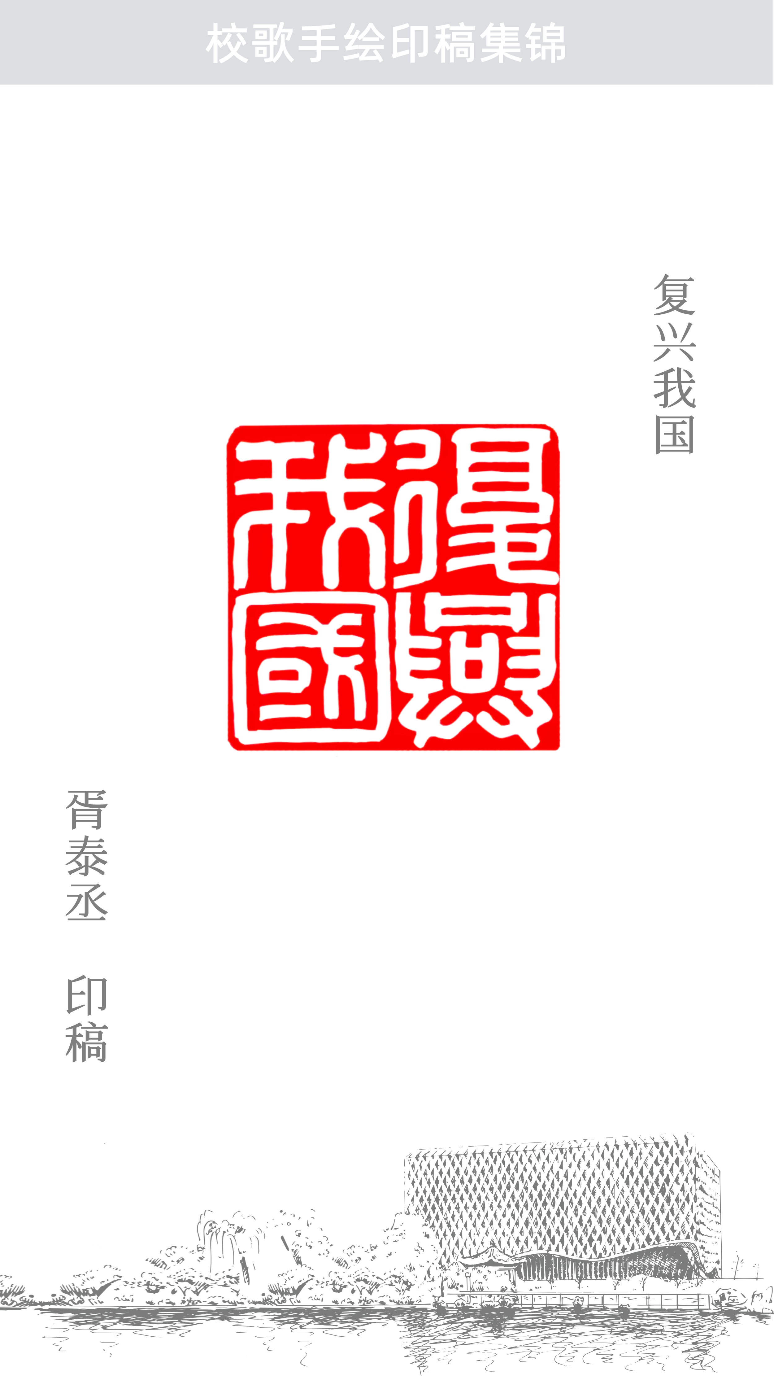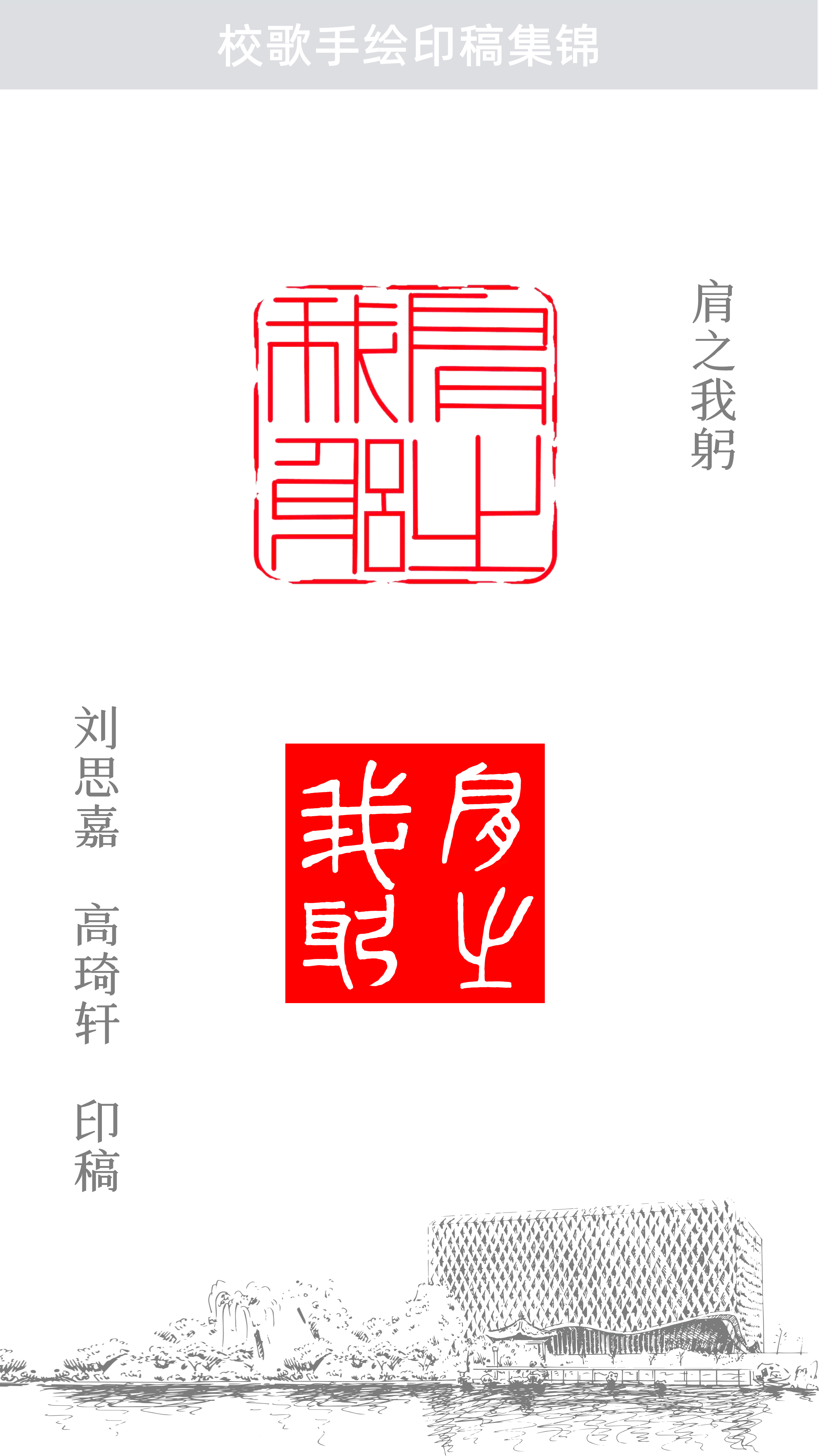 随风潜入夜,润物细无声。艺术创作的过程交织在教与学、课上与课下、书法篆刻与校史文化、历史与现代等信息融合的氛围之中,置身其中,仿佛被一种无形的力量笼罩着,不知不觉浸润身心,这何尝不是师生在用一种别致的艺术形式同“唱”校歌!希望大家能从这首手绘印稿校歌中体会到文化育人的初心、艺术创作的匠心、文化自信的信心。