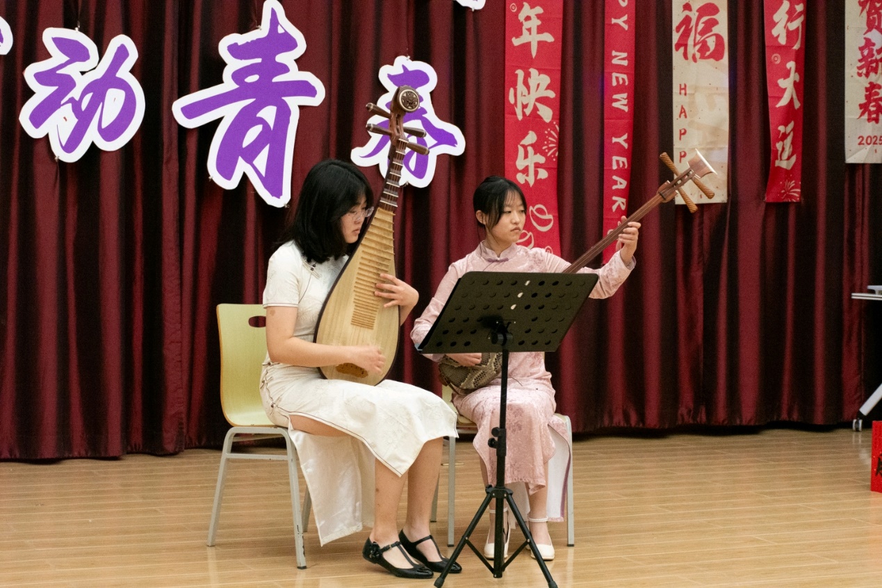 刘博艺、杨兆雄的琵琶合奏《江南春琵琶三弦重奏》仿佛将江南的春天带到了现场,那悠扬的乐声如潺潺流水,令人陶醉。马丹阳用优美的舞姿诠释了桃花笺上的浪漫故事《桃花笺》,舞姿轻盈,如同桃花在风中飘舞。
