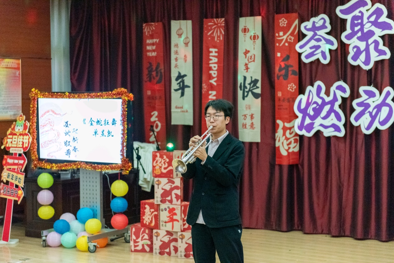 单昱凯的小号演奏《金蛇狂舞》气势磅礴,激昂的旋律如同金蛇舞动,振奋人心。刘文彦深情演绎《有形的翅膀》,那充满力量的歌声如同给人插上了一双无形却有力的翅膀,鼓舞着每一个人。