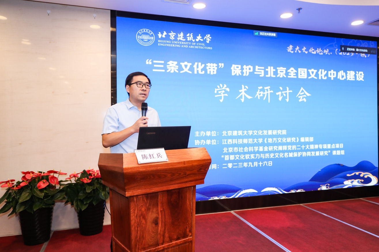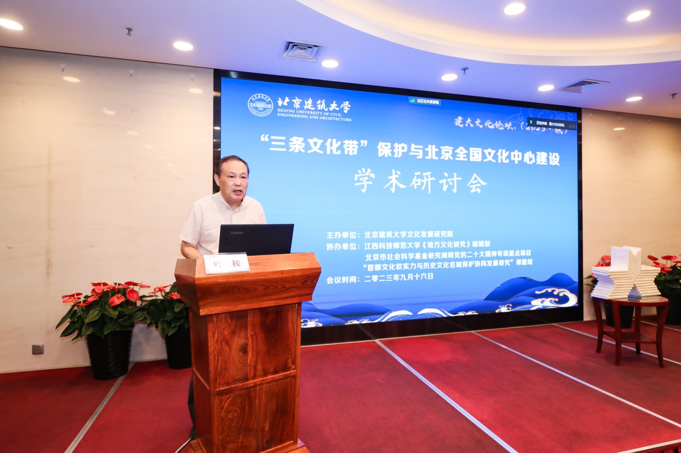 江西科技师范大学《地方文化研究》主编叶桉教授代表协办方致辞。银河娱乐app官网党委常委、副校长陈红兵代表学校对各位专家、学者莅临表示欢迎和感谢。他指出,银河娱乐app官网是北京市和住房城乡建设部共建高校、教育部“卓越工程师教育培养计划”试点高校、北京市高水平特色型大学和北京市党的建设和思想政治工作先进高校。作为北京地区唯一一所建筑类高等学校,学校始终坚持“建筑味十足,北京味十足”的办学特色。文化发展研究院以银河娱乐app官网特色优势学科为依托,整合全校相关科研机构及文化优质资源,聚焦首都全国文化中心建设,开展北京文化发展战略、北京文化遗产保护与活化利用、北京建筑文化、北建大精神与文化形象展示等方面研究,致力于成为北京建筑和城市文化领域的智库型研究平台。本次“三条文化带保护与北京全国文化中心建设”学术研讨会是学校和文化发展研究院服务北京全国文化中心建设的具体举措。