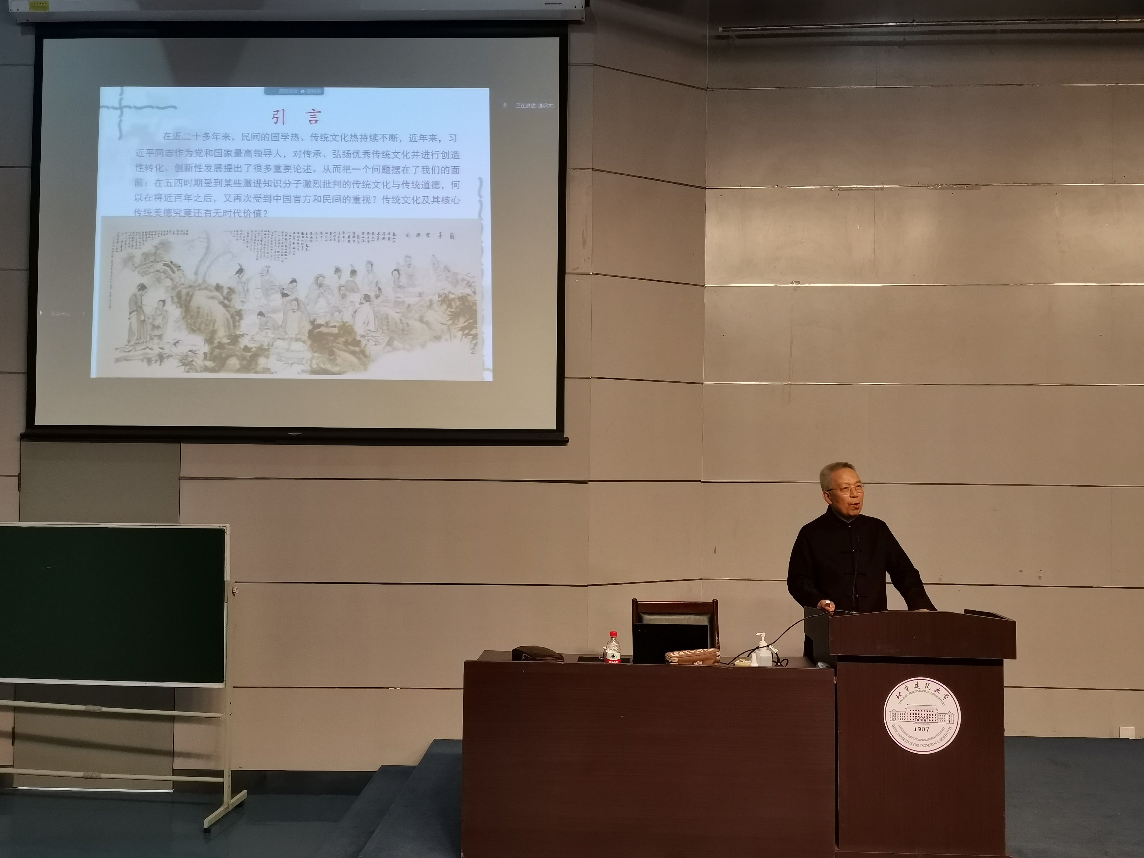 10月29日,“通识大讲堂”第十一期暨“人文讲堂”第十五期在环能报告厅开讲,中国人民大学哲银河娱乐app 教授、国际儒学联合会理事、中国人民大学“十大教学标兵”称号获得者肖群忠教授以《论中华传统文化的崇德特质及其当代价值》为题,从传统美德作为中华文化的核心和灵魂、传统美德的历史演变和基本精神以及传统美德的当代价值三个方面,深入浅出地阐释了中华传统美德。近三百名师生通过线上线下相结合的方式参加了讲座。文发院/人文银河娱乐app 院长秦红岭教授主持讲座。