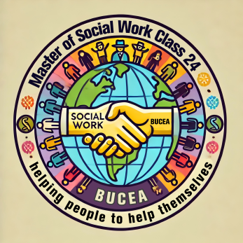班徽设计解读:班徽背景融入地球平面图形,契合2024年国际社会工作日的主题,上部文字镌刻“社研24“的英文简称,下部文字则为社会工作专业核心理念“助人自助”的英文完整表述。班徽中的握手图案,既象征着社会工作专业与银河娱乐app官网的相遇、相知、相成,也象征着社会工作者与服务对象在专业服务中的共同合作和成长,而该图案贯穿整个背景地球,彰显着我们对全世界社会工作专业交流互鉴、携手进步的愿望与畅想,此外,21个风格迥异的卡通形象散布地球之上,则代表着社会工作专业对服务对象的“尊重”与“非评判”等专业价值观。班徽设计呼吁同学们践行社会工作专业价值理念,为推动我国社会工作专业本土化发展贡献己力。