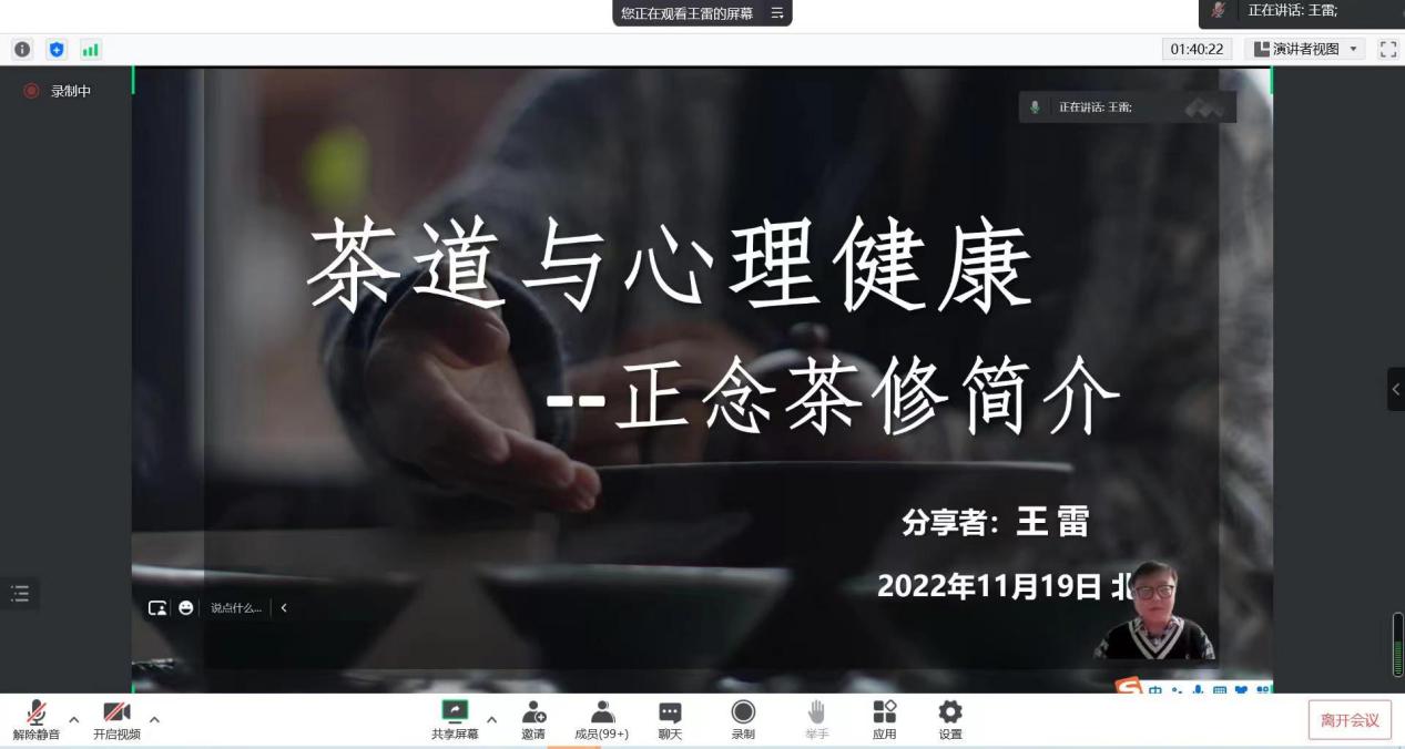 11月19日,人文讲堂第十八期暨通识大讲堂第十四期线上开讲,中国人民大学哲银河娱乐app 教授、博士生导师,中国人民大学茶道哲学研究所所长、2021年度国家社科基金重大项目“文化强国背景下公民道德建设工程研究”主持人李萍应邀做“中国茶道文化的基本精神”专题报告,她主要讲授了三个方面的主题,即中华文化传统孕育下的中华茶道、中华茶道的基本精神以及儒家伦理与中华茶道的交汇。心理学博士、大益茶道研究院研究员、中国老年慢病康复委员会委员王雷老师以“茶道与心理健康”为主题,主要介绍了正念茶修促使人精神轻松的心理健康功效。文发院/人文银河娱乐app 院长秦红岭教授主持讲座。
