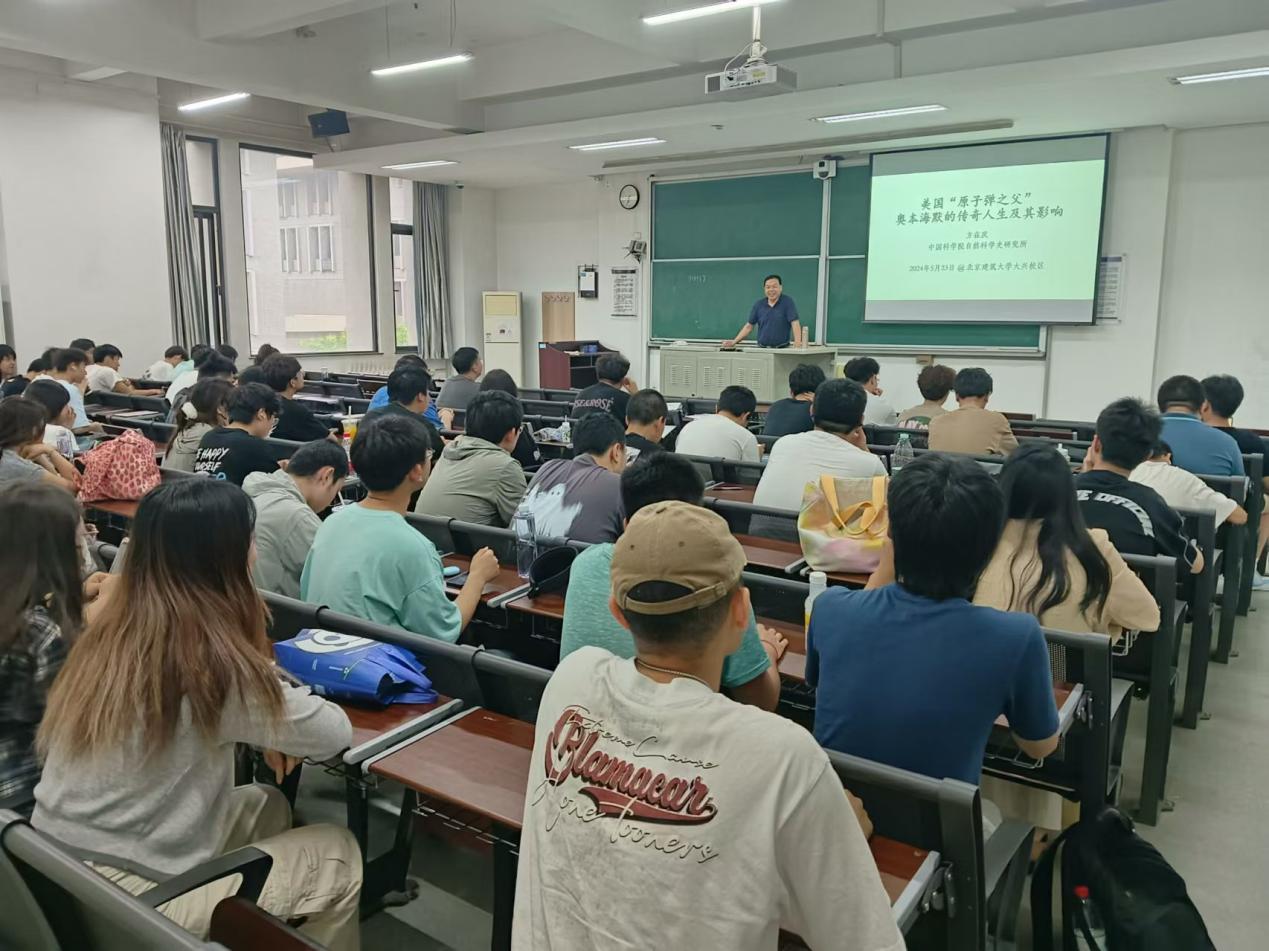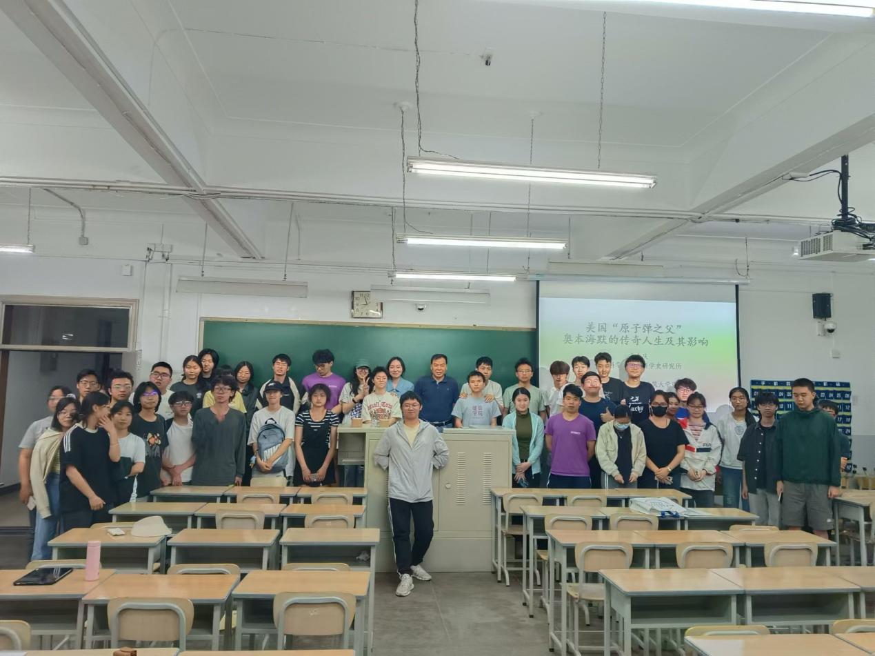 银河娱乐app官网通识核心课“名家讲堂”邀请到中国科银河娱乐app 自然科学史研究所方在庆研究员,于5月21日、5月23日在两校区分别进行了一场题目为《奥本海默的传奇人生及其影响》的报告。本次讲座是通识核心课《科学技术史选讲》的课中课,主讲教师黄尚永主持报告,百余名同学聆听了报告。