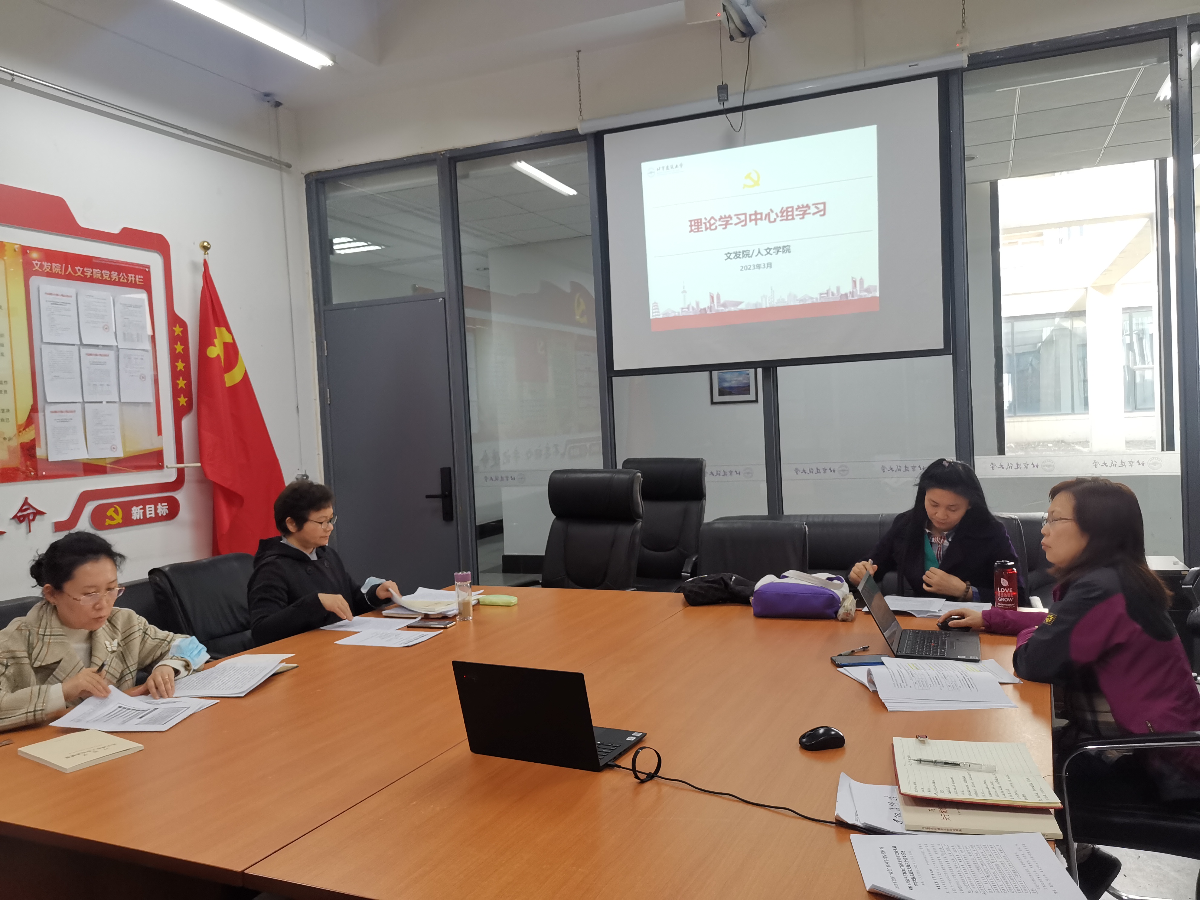 3月28日下午,文发院/人文银河娱乐app 党总支理论学习中心组在大兴校区基D427(党员之家)开展集中理论学习。在前期自学基础上,学习以线上线下结合的方式,围绕学习贯彻全国“两会”精神、学习《习近平关于城市工作论述摘编》和世界数字教育大会精神等内容展开。