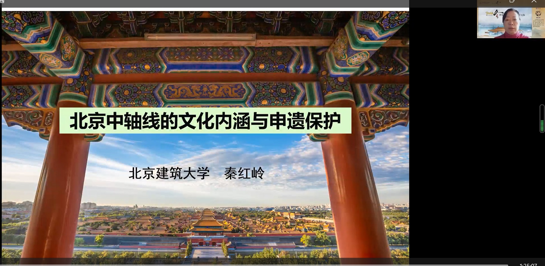 秦红岭院长结合学习和研究,以“北京中轴线的文化内涵与申遗保护”为题做特邀报告暨重点发言。从礼之象征、中和之美、多元文化共生三个方面介绍了北京中轴线文化凝聚的中华优秀传统文化在建筑文化、城市文化方面的体现,结合介绍《北京中轴线文化遗产保护条例》的主要内容,谈对“人民城市人民建”的认识,帮助与会人员进一步掌握习近平总书记关于北京的系列讲话精神实质,特别是对其中有关城市规划、城市发展和管理、历史文化传承和保护内容的理解。